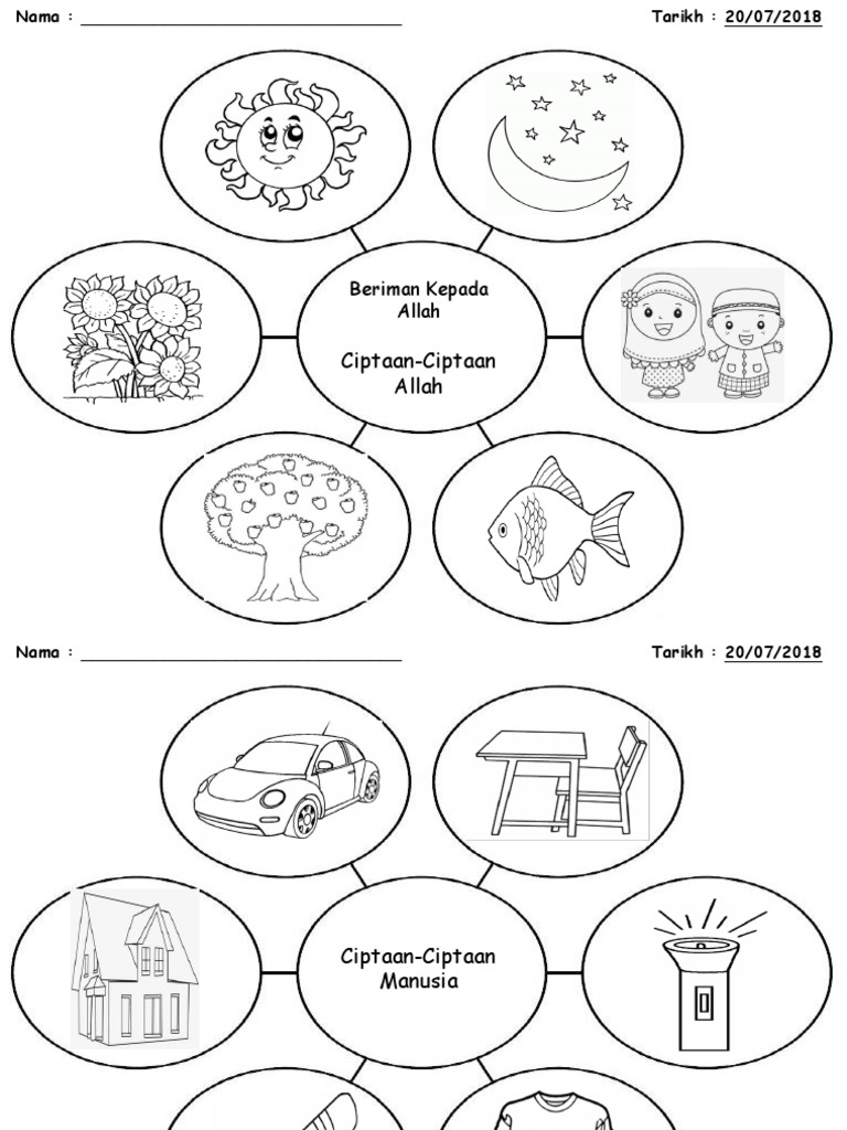 Tulis Huruf A Pada Ciptaan Allah Dan Huruf M Pada Rekaan Manusia Worksheet